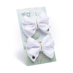 Hair clips de moñitos en par elaborados completamente a mano en cinta de faya de alta calidad y apliques sobre hairclip forrado.