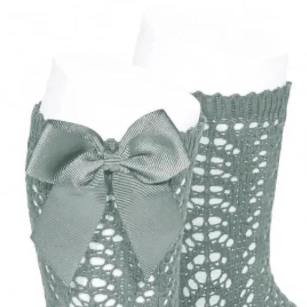 Calcetines Altos Perlé Calados Con Lazo Bruma