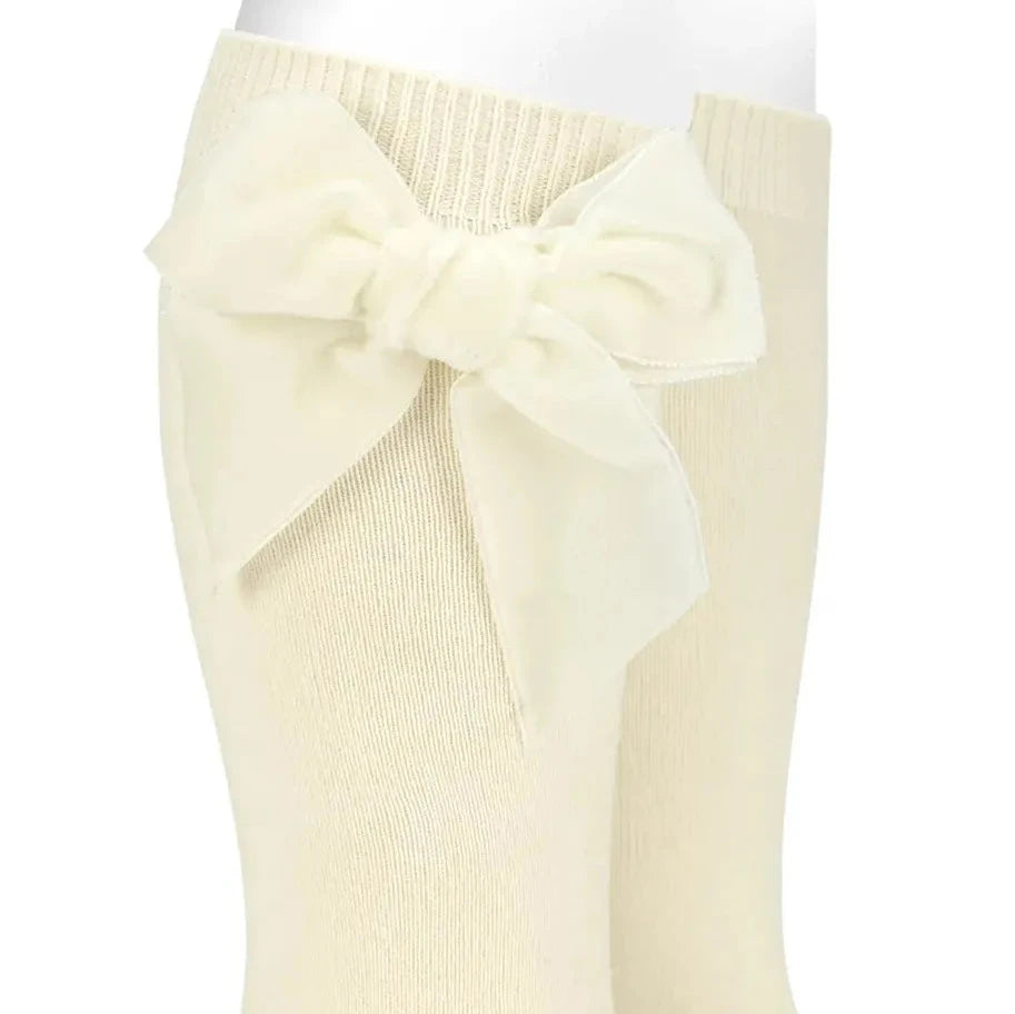 Calcetines Altos Perlé Calados Con Lazo Nata