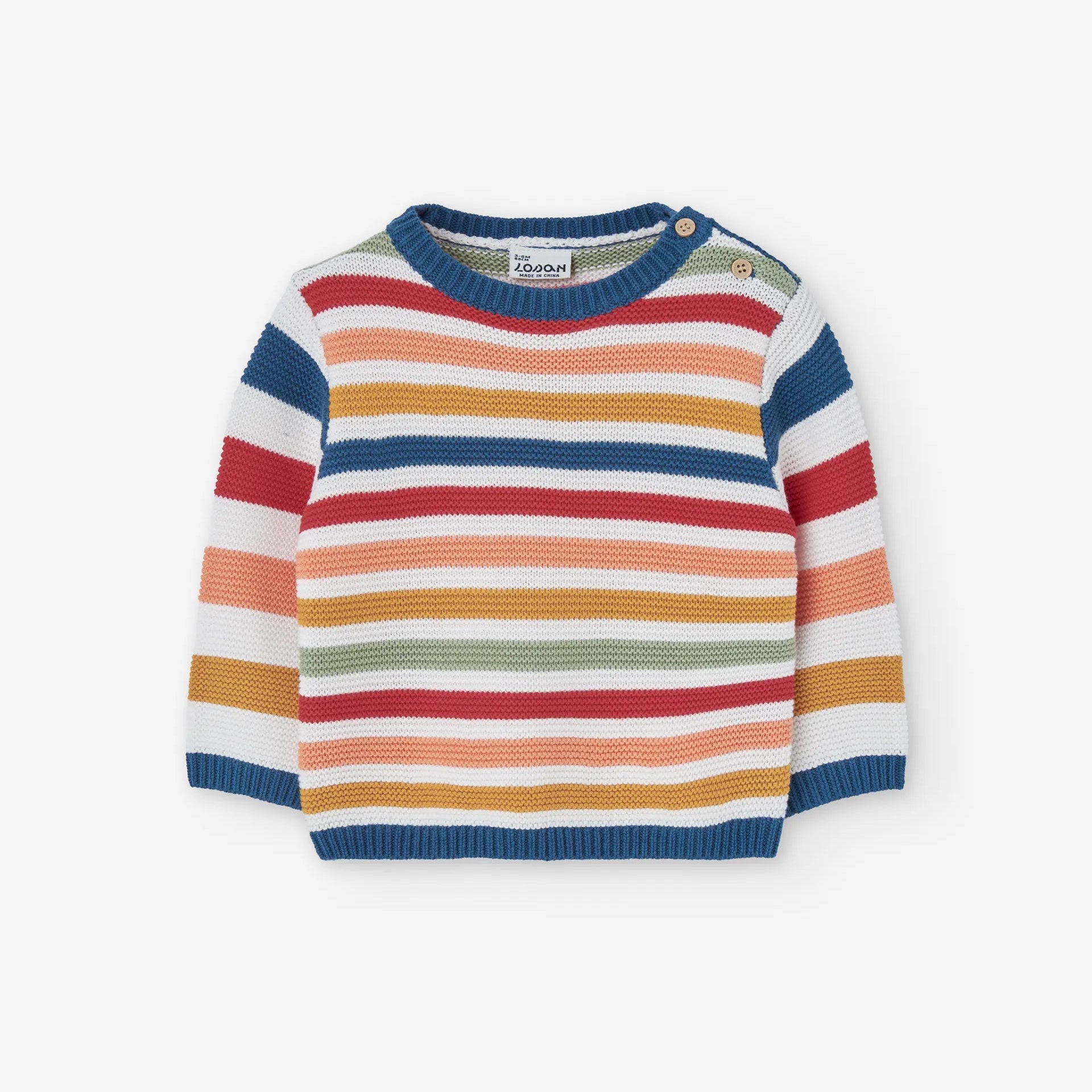Un buso de punto lleno de color y alegría. Con un diseño de rayas multicolor y botones en el hombro para vestir fácilmente, este suéter es perfecto para acompañar los días frescos con estilo y comodidad. Su tejido suave y transpirable brinda abrigo sin perder ligereza, ideal para combinar con jeans o pantalones de algodón.