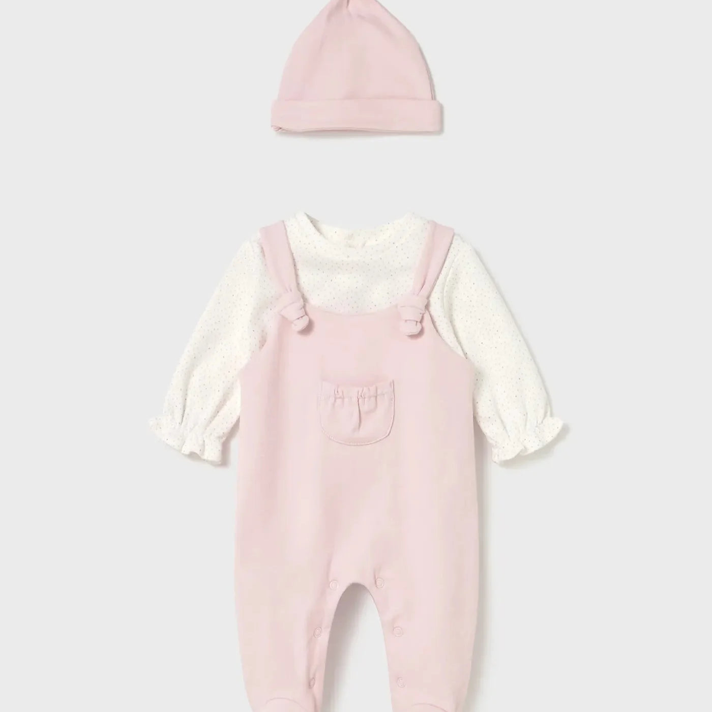 Conjunto Pelele Peto Con Gorro Rosa Cuarzo Mayoral 2602