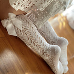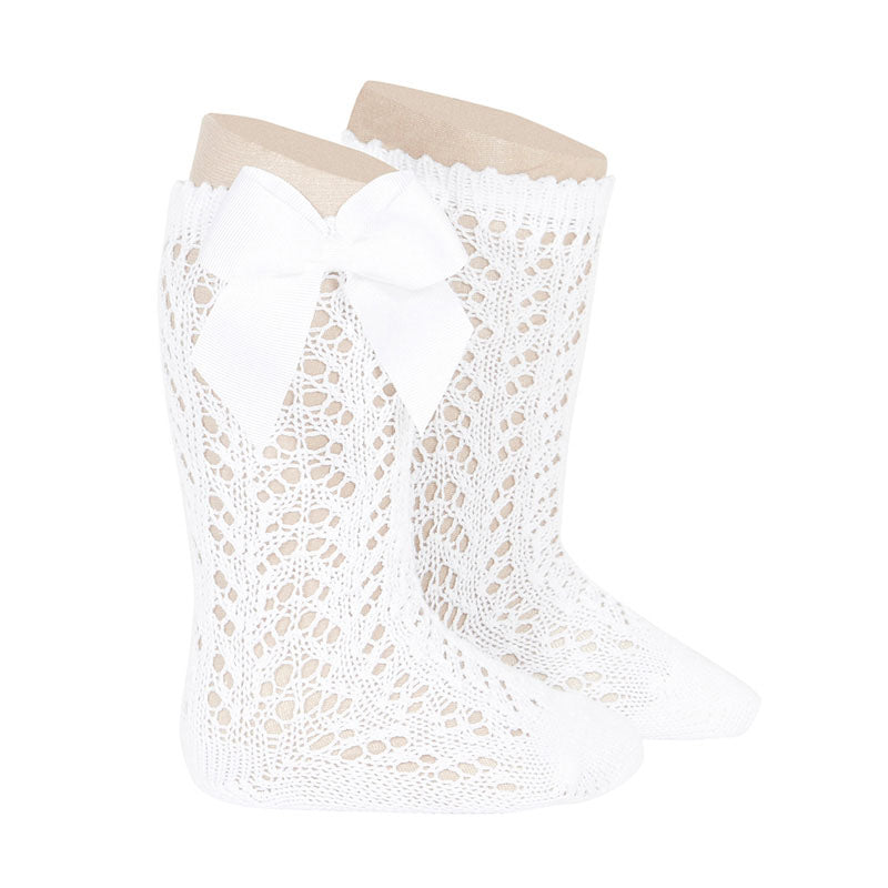 Calcetines Altos Perlé Calados Con Lazo Blanco