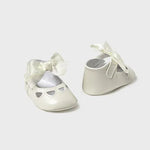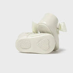 Zapatos de tipo merceditas para bebé, de estilo clásico y atemporal para sus estilismos más elegantes. Material exterior efecto piel. Forro interior y plantilla de algodón transpirable. Cierre con velcro ajustable que garantiza una perfecta sujeción del pie. Lazo decorativo.