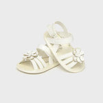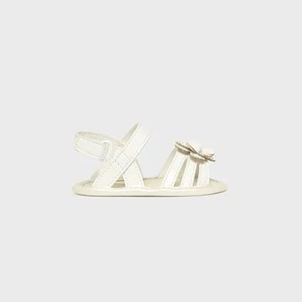 Sandalia abierta en color blanco, diseñada para darle un toque elegante y fresco a los looks más vestidos con aplique de flor. Confeccionada en material sintético con forro textil que aporta suavidad y una suela ligera que brinda comodidad en cada paso.