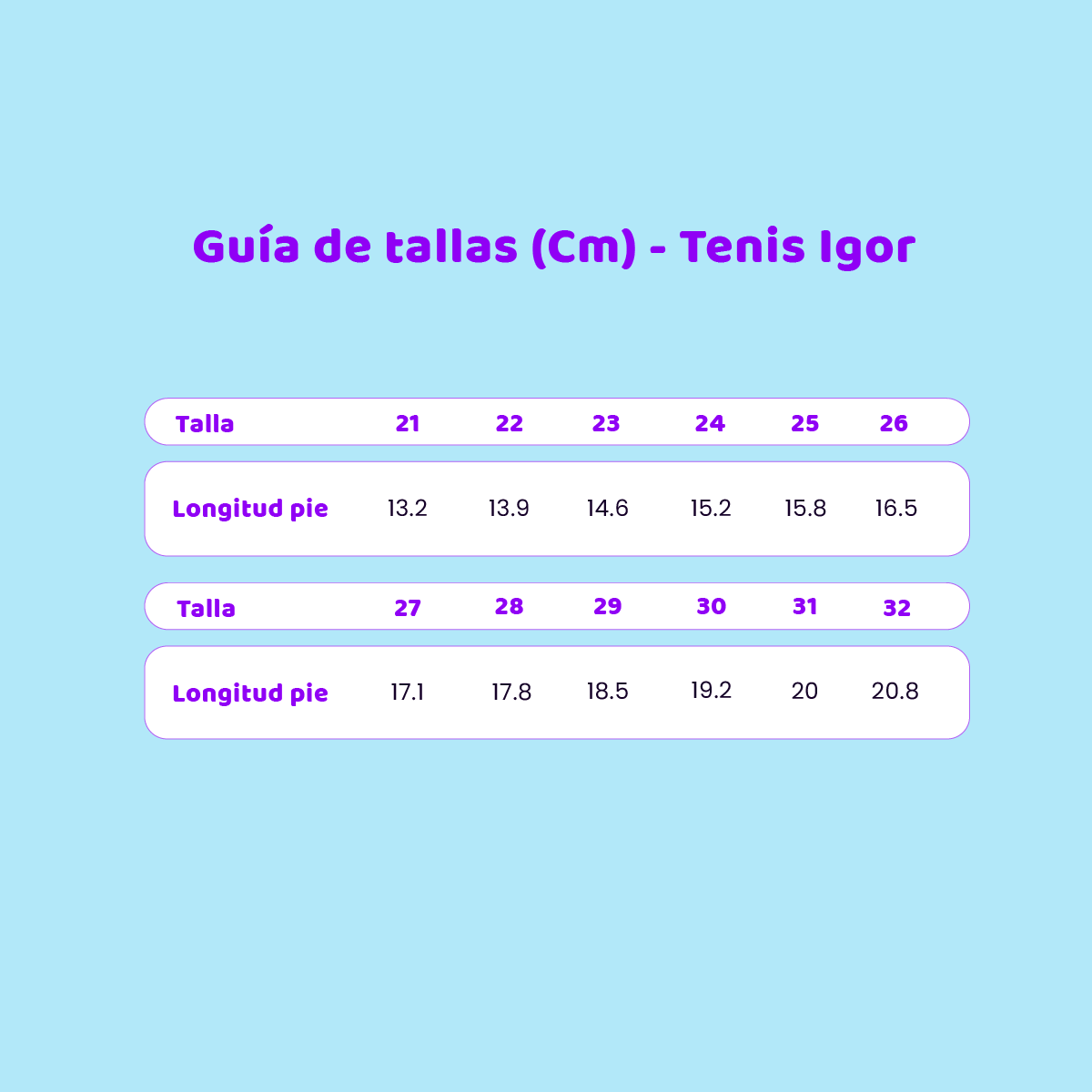 Estos tenis IGOR están fabricados en lona 100% algodón, con cierre adherente que facilita su uso y fomenta la autonomía. Su diseño con suela plana, promueve el desarrollo natural del pie, mientras su estructura es flexible, suave y ligera: perfectos para acompañar cada paso con libertad y comodidad.