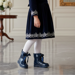 Botas de agua para niña IGOR con acabado brillante y detalle de lazo en seda en el cuello, que les aporta un toque elegante y encantador. Su diseño combina estilo y funcionalidad, perfectas para los días de lluvia o para un outfit elegante o sport.