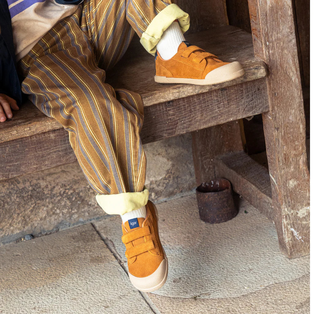 Tenis de piel IGOR; son deportivos en cuero para niños, su diseño barefoot de suela plana, promueve un desarrollo natural del pie, y su estructura es flexible, blandita y ligera. El diseño con tiras ajustables de cierre de velcro, facilita un uso práctico y rápido.