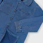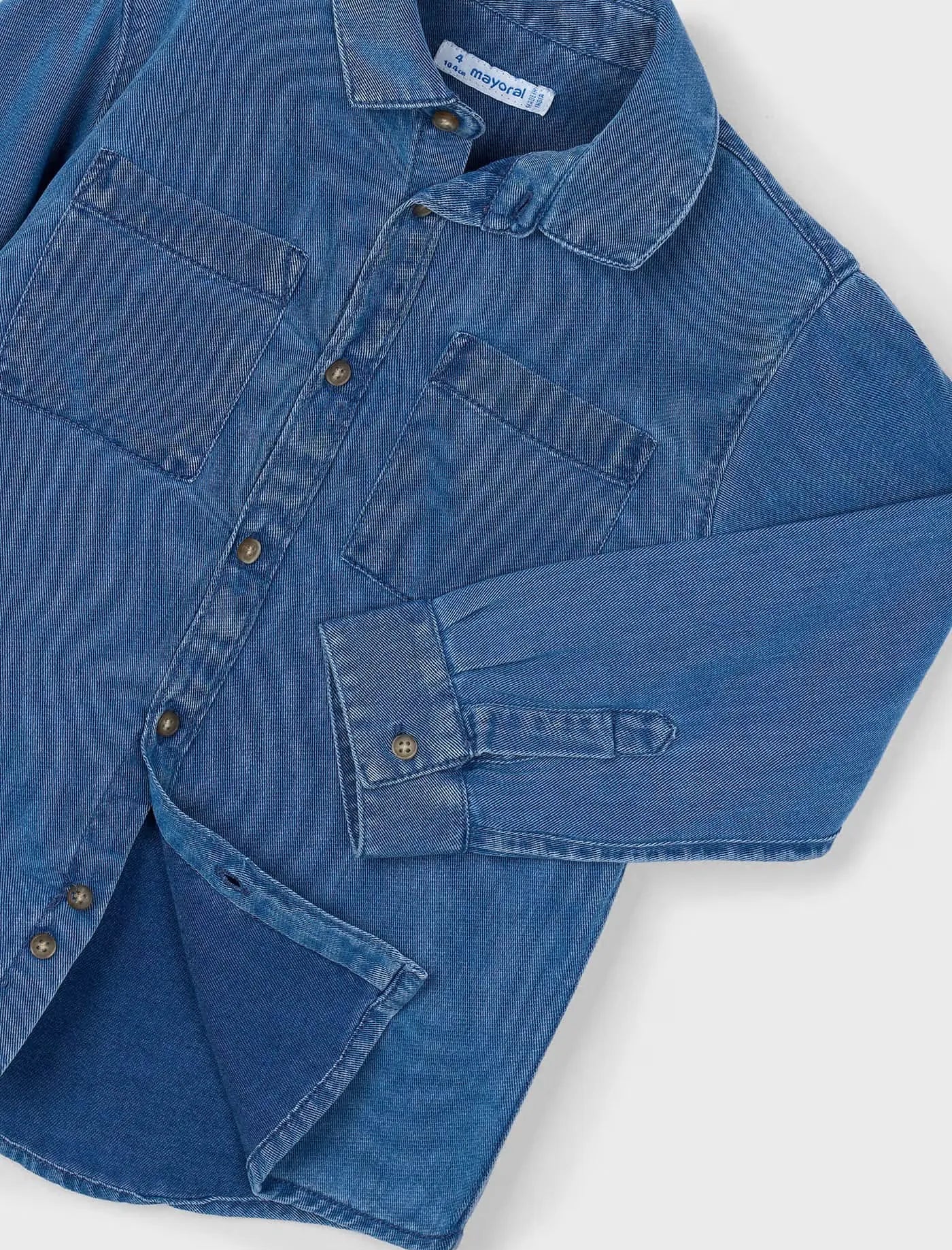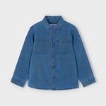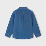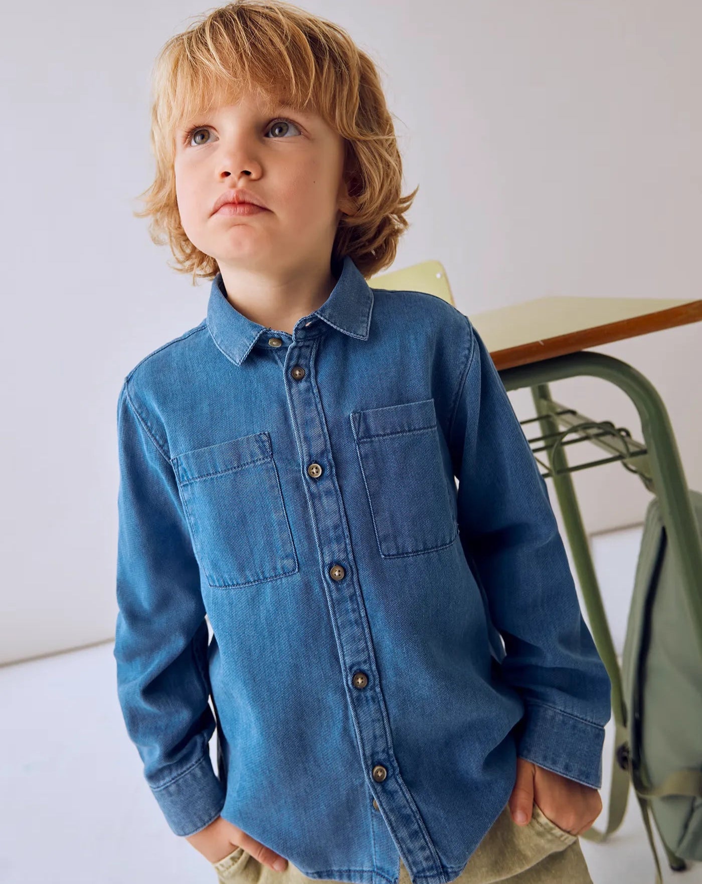 Camisa de manga larga para niño con puños abotonados con cuello camisero y cierre con botones en la parte delantera.