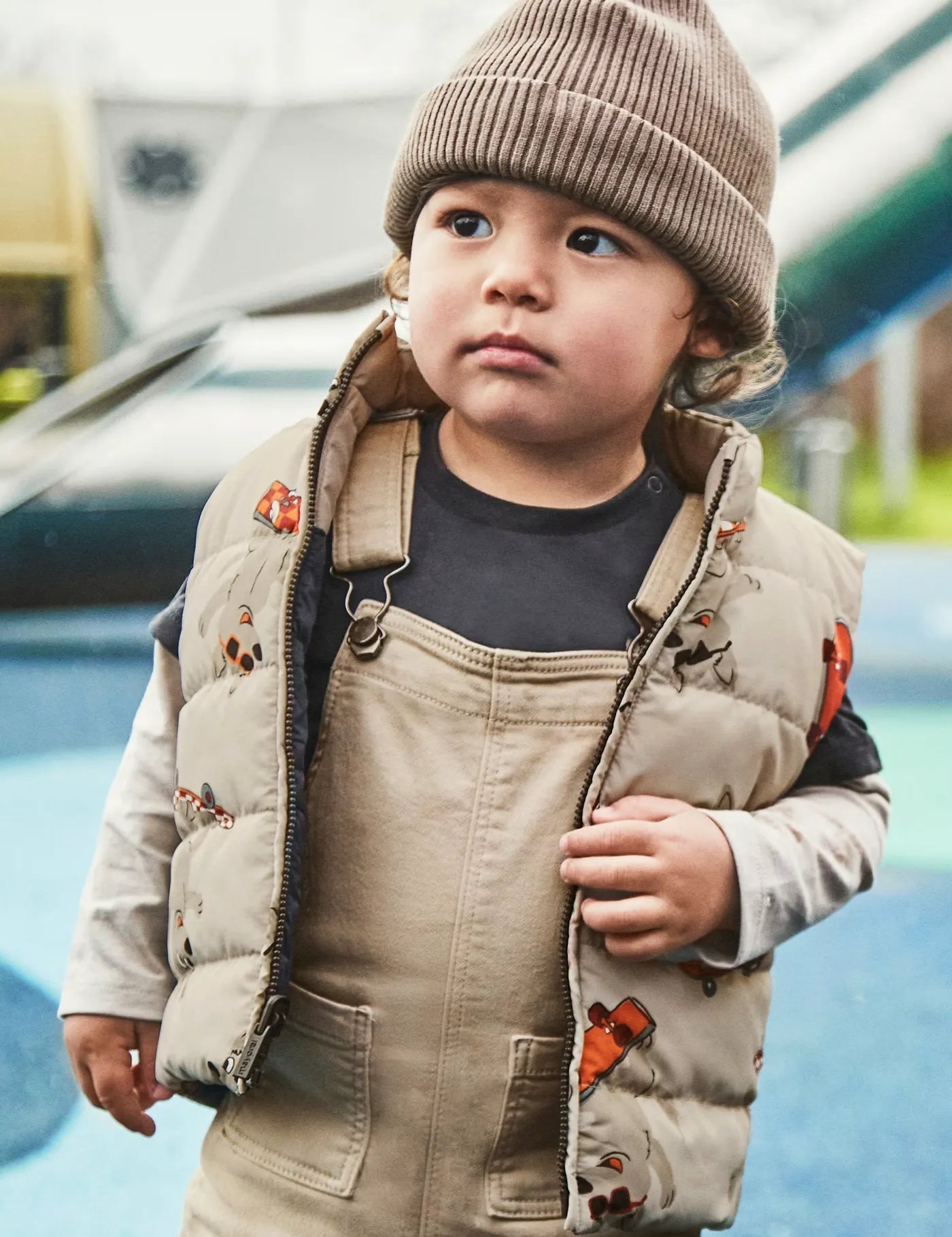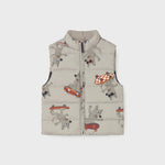 Chaleco doble faz con divertido estampado de zorros; central delantero con cremallera. Exterior textil con efecto acolchado. Suave forro interior de poliéster.