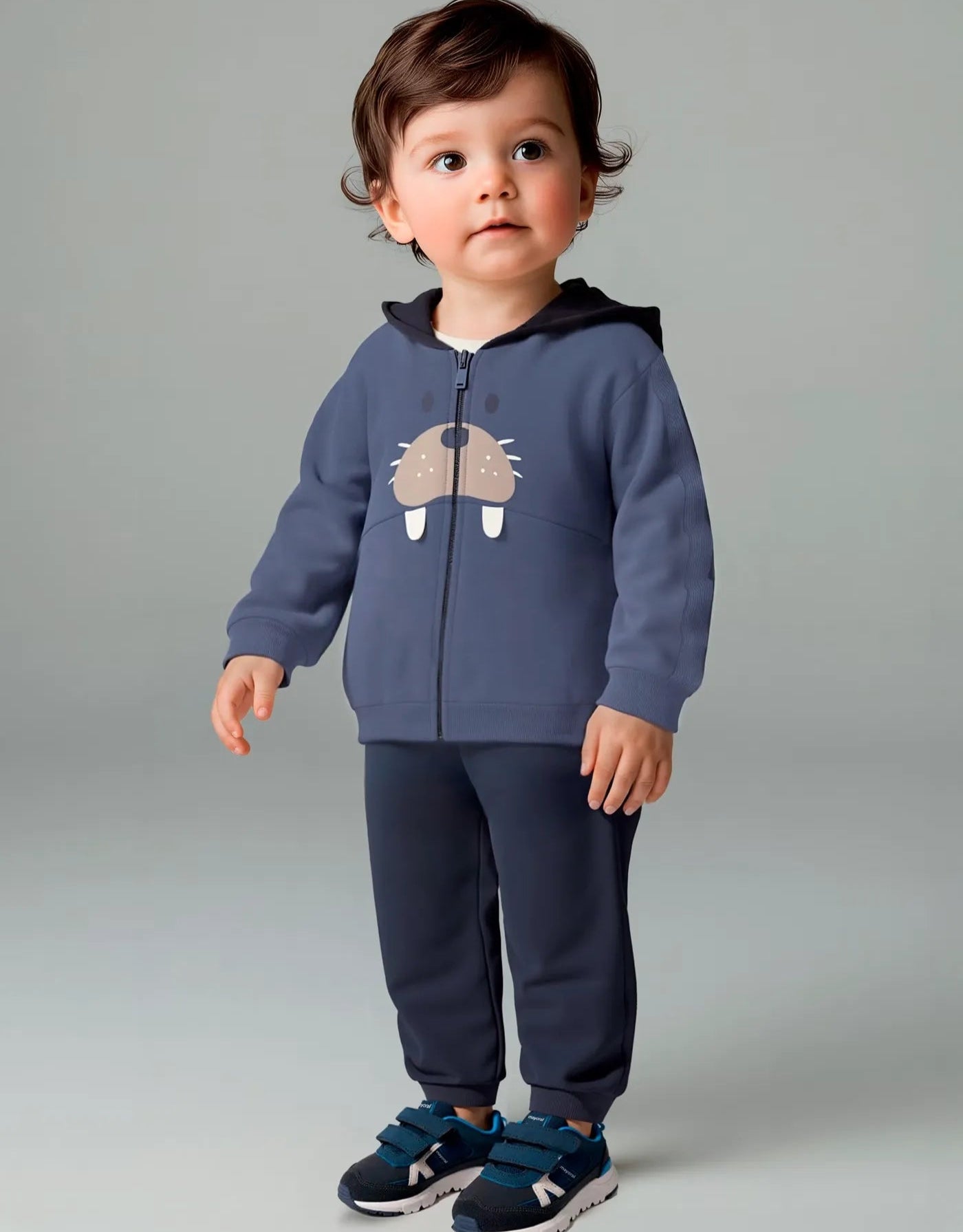Sudadera de manga larga con print para bebé con capucha, cierre central delantero con cremallera oculta.