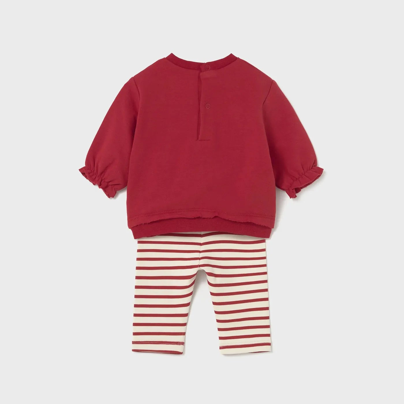 Sudadera de manga larga con bordado, apliques y volante decorativo; con cuello redondo, botones a presión en el hombro y lateral para facilitar la puesta de la prenda.