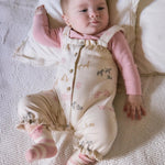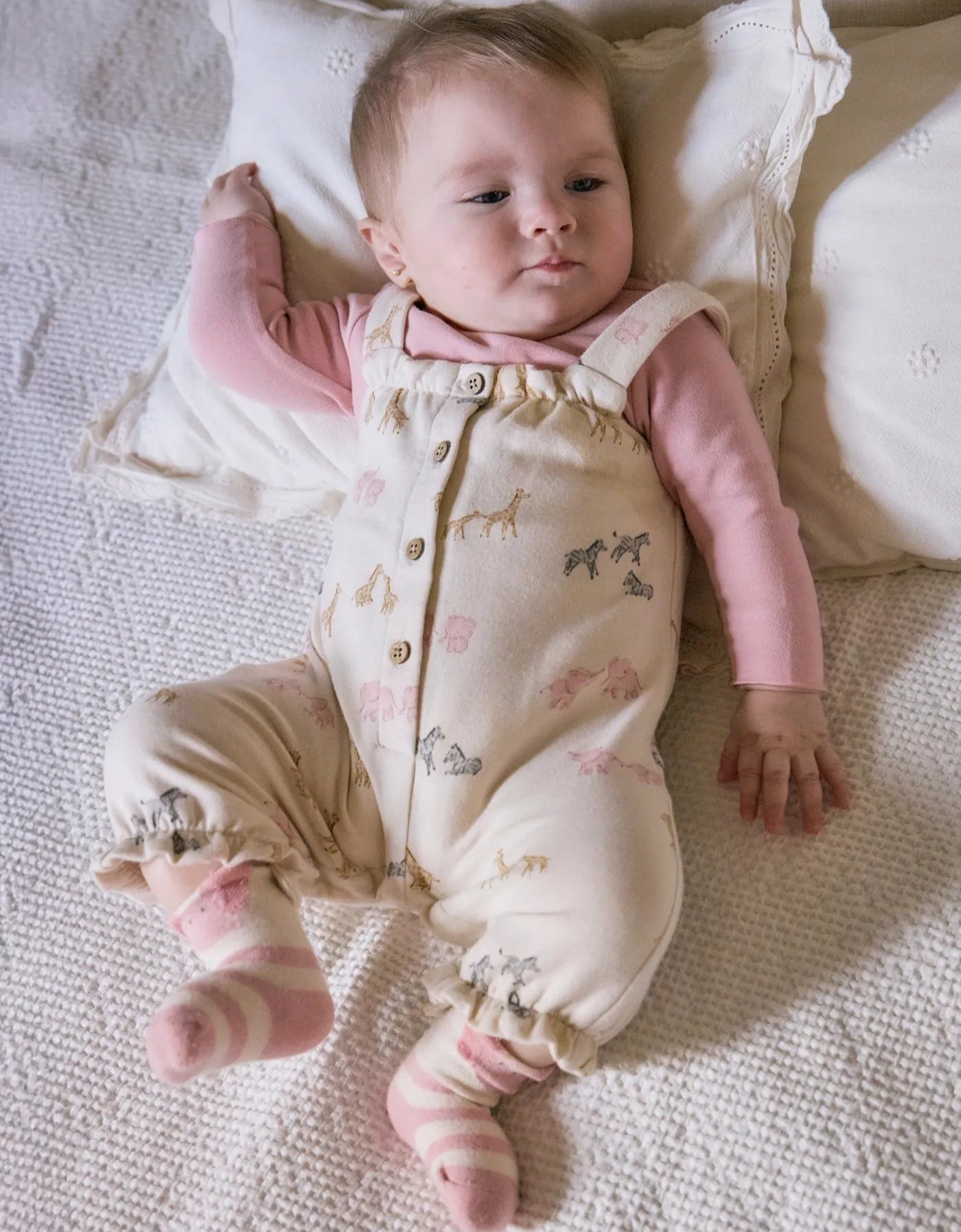 Diseño con tirantes, botones a presión en la entrepierna para facilitar la puesta de la prenda; modelo con rizo, bajo elástico para un mejor ajuste.