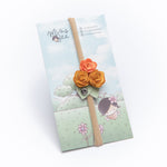 Trío de mini florecitas en diademita con elástico Hawaii de nylon super suave, que se adapta a la cabecita de la bebé sin tallarle.