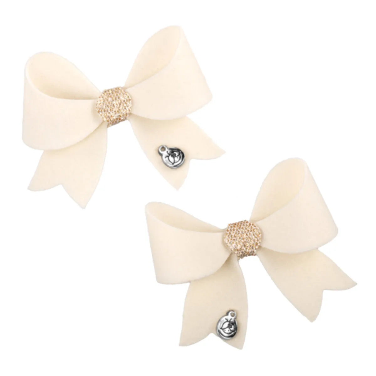 Par de moñitos en hair clip elaborados completamente a mano en microsuede vegano y apliques sobre hairclip forrado.