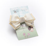 Hebilla Moño Bubbles elaborado completamente a mano en cinta de faya y apliques sobre hebilla francesa, ideal para abejitas más grandes.