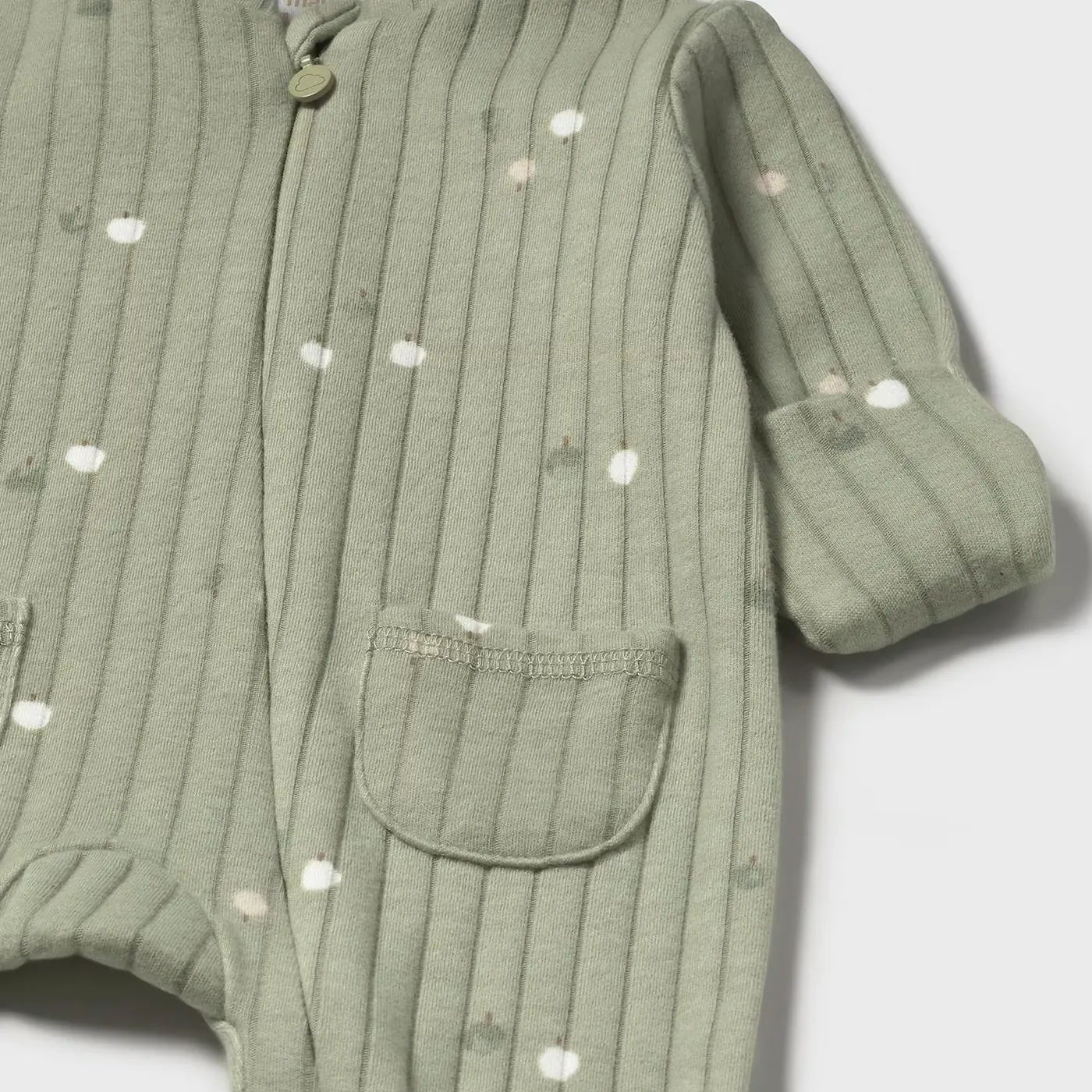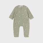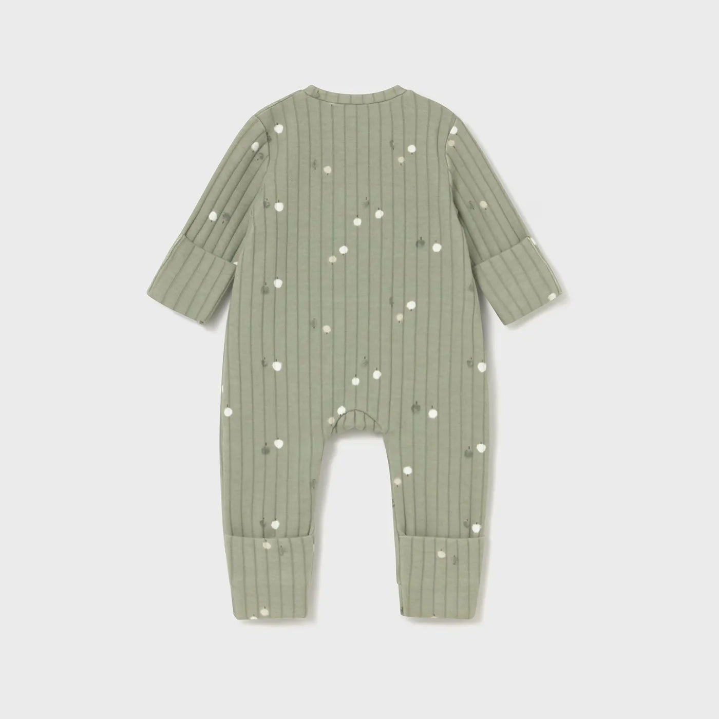 Pelele de manga larga para bebé con cuello redondo. Cierre central delantero con cremallera oculta. Diseño estampado; se trata de un artículo de diseño unisex de gran versatilidad por la neutralidad de sus tonos y su forma.