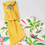 Nuestro encantador vestido estampado, con moño amarillo en hombro, está diseñado para hacer que tu pequeña brille. La botonadura en el costado agrega un toque práctico, combinando moda y comodidad en una pieza perfecta para cualquier ocasión especial.