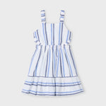 Vestido de tirantes para niña a rayas, cierre con botones en la espalda, aberturas laterales de adorno y goma elástica para facilitar la puesta de la prenda.