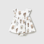 Vestido estampado de ositos, con manga estilo princesa y volantes para bebé. Cierre con cremallera en la parte trasera para una puesta ágil y rápida.